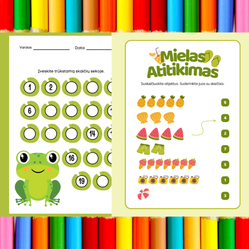 Rinkinyje rasite įvairias lavinančias veiklas: skaičiavimą, karpymą, skaičių rašymą ir loginio mąstymo užduotis.