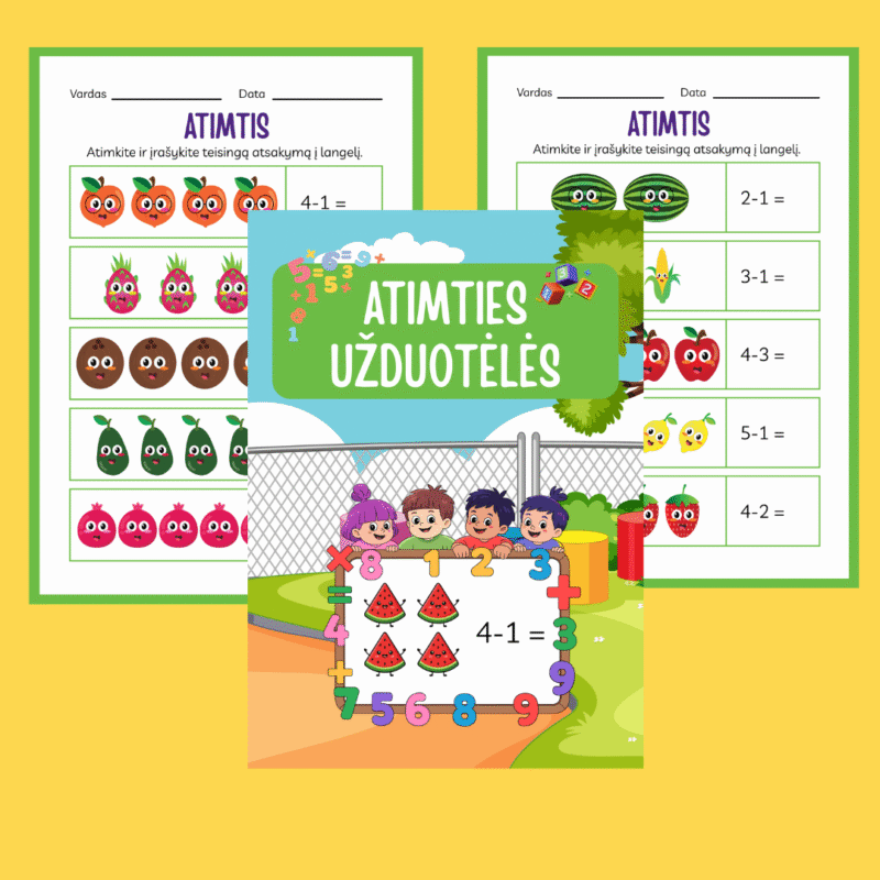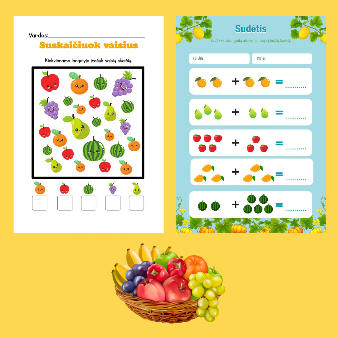 3.50€Vaisių skaičiavimo užduotėlės vaikams PDF | užduotys atsispausdinti (32 puslapis)